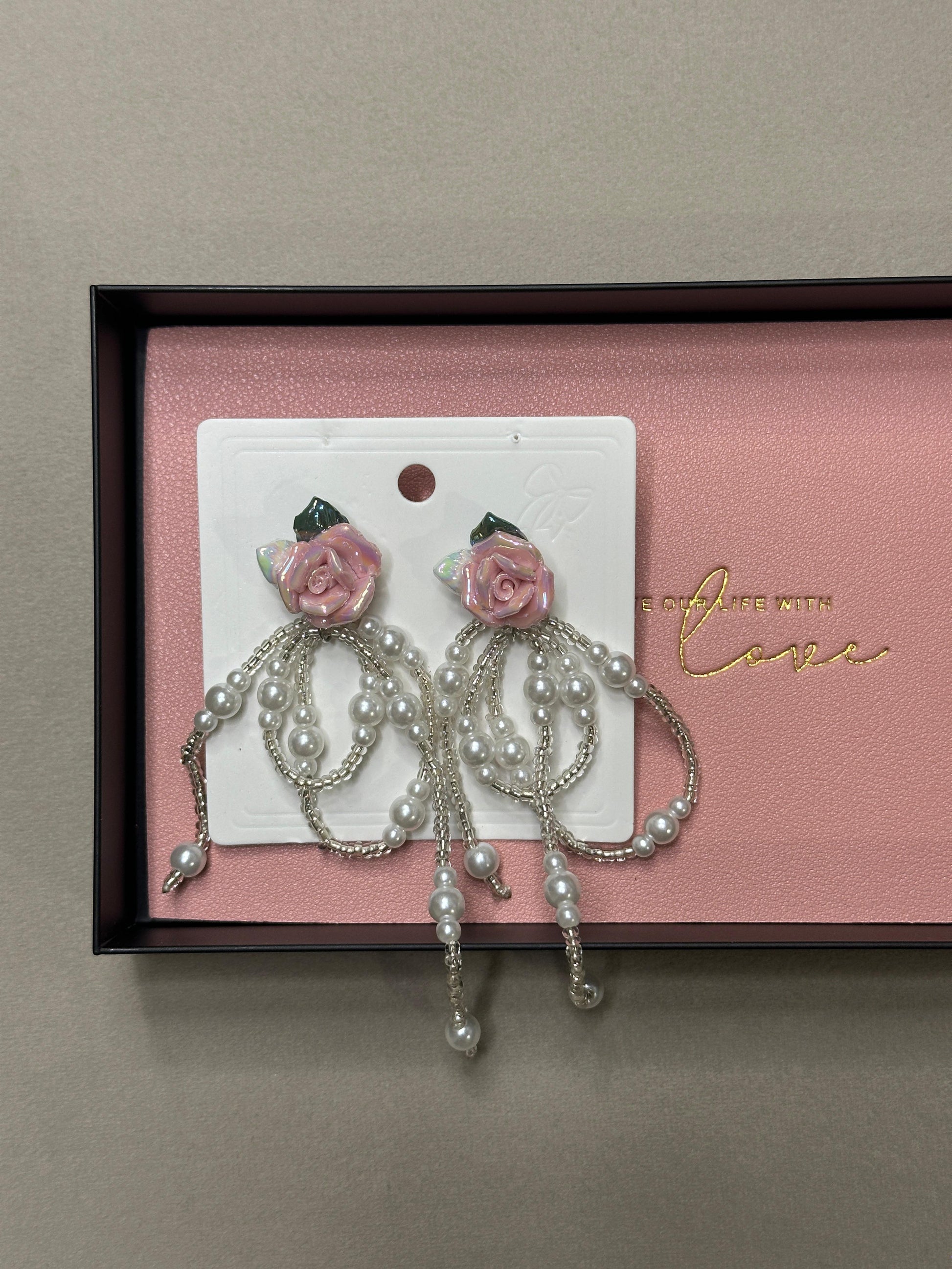 Add a touch of elegance and charm to your look with these Rosé Pearl Tassels. Featuring delicate pink rose floral studs paired with cascading pearl bead tassels, this piece blends femininity with timeless grace. Perfect for weddings, festive occasions, or simply to elevate your everyday style, these earrings are lightweight yet striking—an accessory that blooms with beauty. 🌸✨